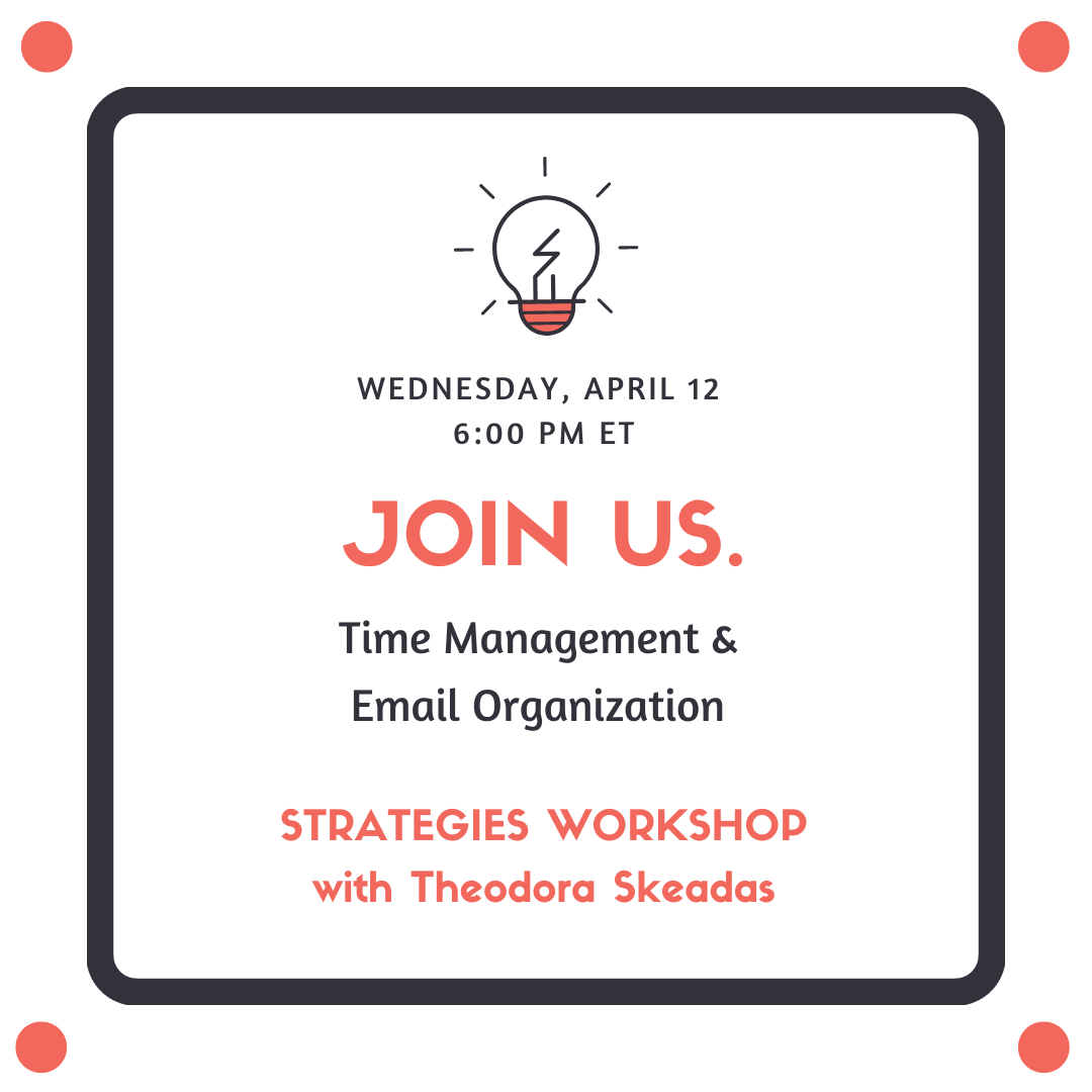 Join us for a free one-hour workshop on strategies around time management and email organization! This is our sixth session, since our first few were quite popular -- 3,000 people registered! In these busy times, better organizing our team and emails help us be more effective, productive, and content. Theodora Skeadas, president of the HKS New England Alumni Association, president of Harvard W3D: Women in Defense, Diplomacy, and Development, recent co-chair of the HKS Women's Network, and Executive Director of Cambridge Local First is excited to share her strategies with you! This conversation is scheduled for Wednesday, April 12 at 6 PM ET! A Zoom link will be sent to all those who registered.